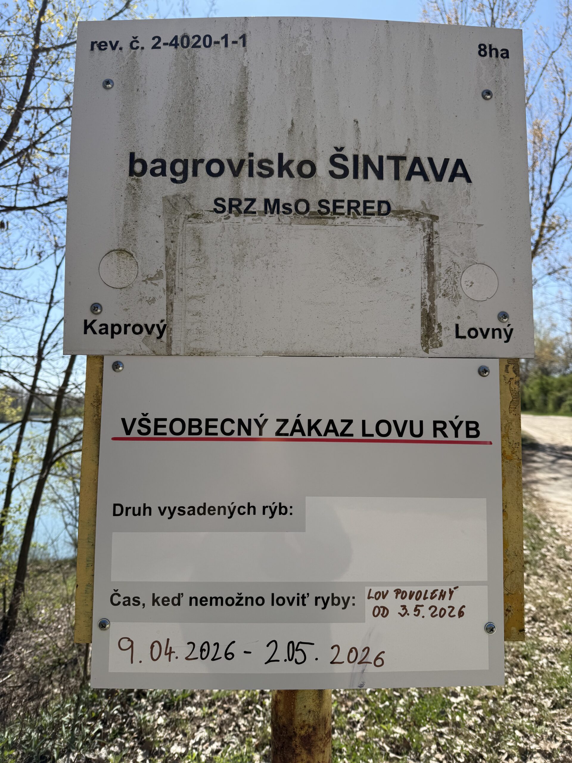 OZNAM: Zákaz lovu rýb Šintava – platí všeobecný zákaz lovu od 9.4.2026 do 2.5.2026 (vrátane). Lov je povolený od 3.5.2026. Koleno a Čepenské štrkoviská – Zákaz lovu kapra od 9.4.2026 do 17.4.2026 (vrátane). Lov je povolený od 18.4.2026. Výbor SRZ Mso Sereď Galéria IMG_6270