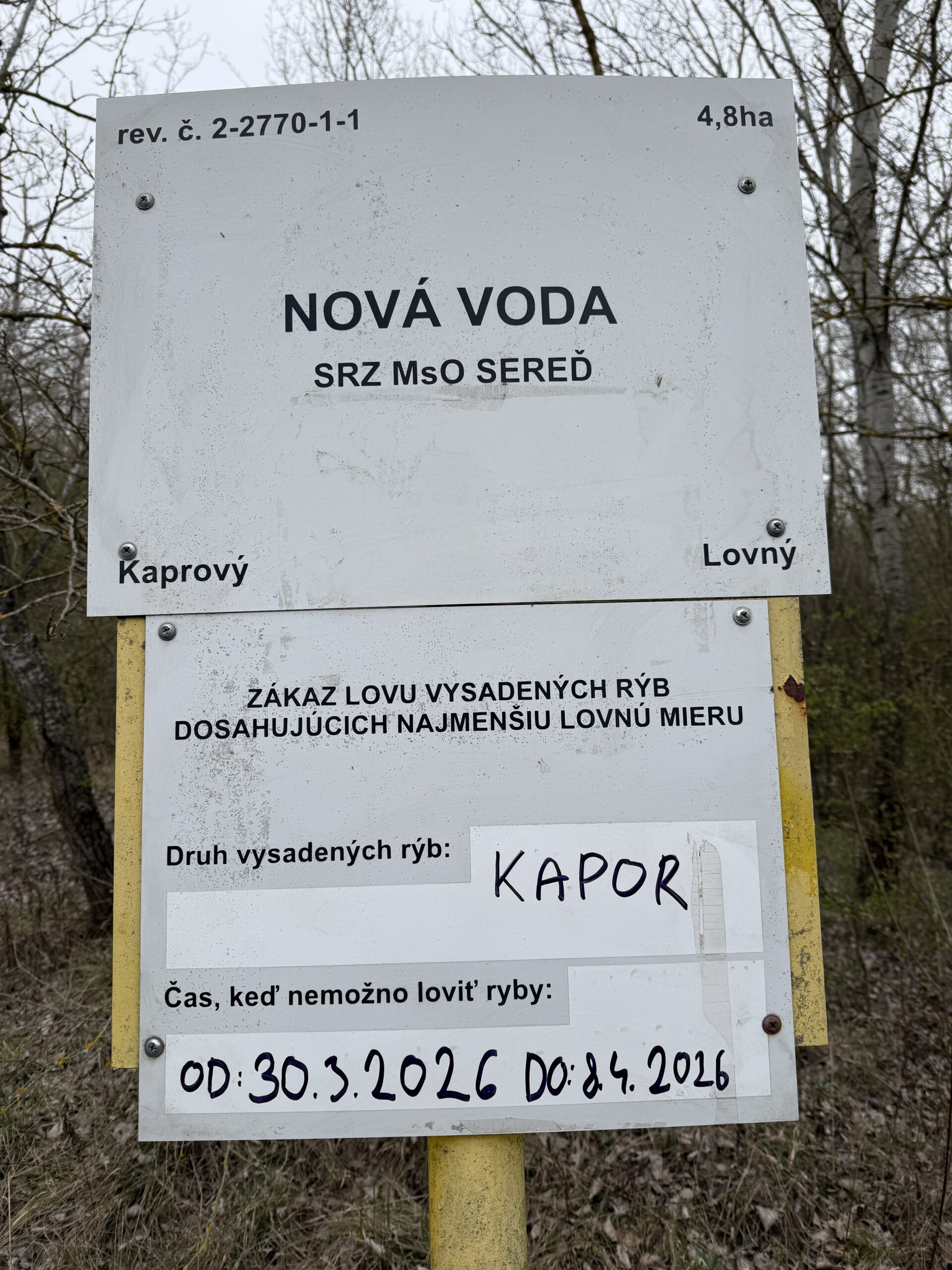 Vážený členovia, dnes prebehlo prvé jarné zarybnenie kaprom na revíroch : Rameno Horný Čepeň, Nová voda, nádrž Pusté Sady a VN Báb Platí tak zákaz lovu kapra od 30.03.2026 do 08.04.2026 Galéria IMG_6113 IMG_6107 IMG_6104